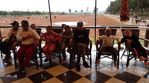 تمكن الاطفال في هذه الفقرة من التقرب للحصان و لمسه بحيث قاموا بالركوب عليه و القيام بجولة حول الحلبة .