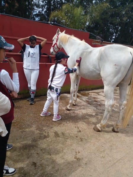 في هذه الفقرة تعرف الطفال على كيفية التعامل مع الحصان من ناحية النظافة بحيث تعرفوا على ادوات المستعملة في تنظيف الحصان، و كذلك تعرف الاطفال على مايحتاجه الفارس لكي يمتاط الحصان .