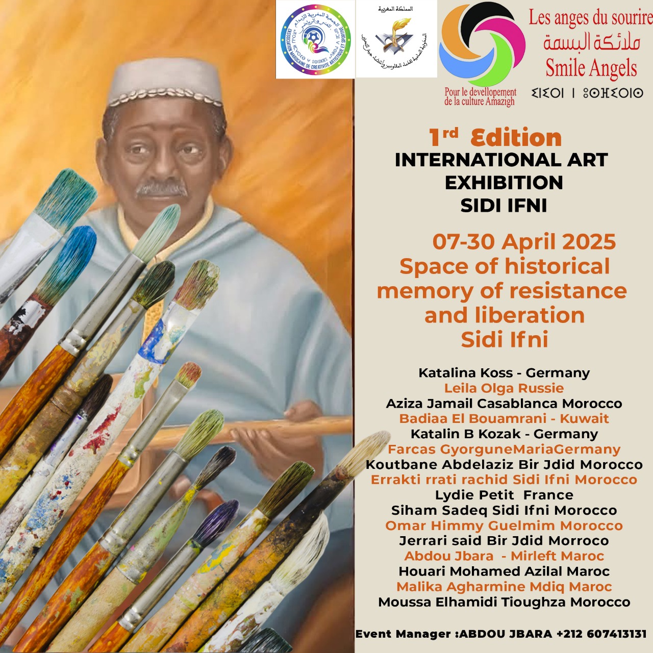 يشهد إقليم سيدي إفني، في الفترة الممتدة من 7 إلى 30 أبريل، فعاليات المعرض الدولي الأول لسيدي إفني، الذي تنظمه جمعية ملائكة البسمة لرئيسها السيد عبدالواحد جبارة، بشراكة مع المندوبية السامية لقدماء المقاومين وأعضاء جيش التحرير، وبتنسيق مع الجمعية المغربية للإبداع الفني والرياضي السيد خالد غزالي، تحت الإشراف الفني للفنانة التشكيلية عزيزة جمال.(ايت باعمران 2025)